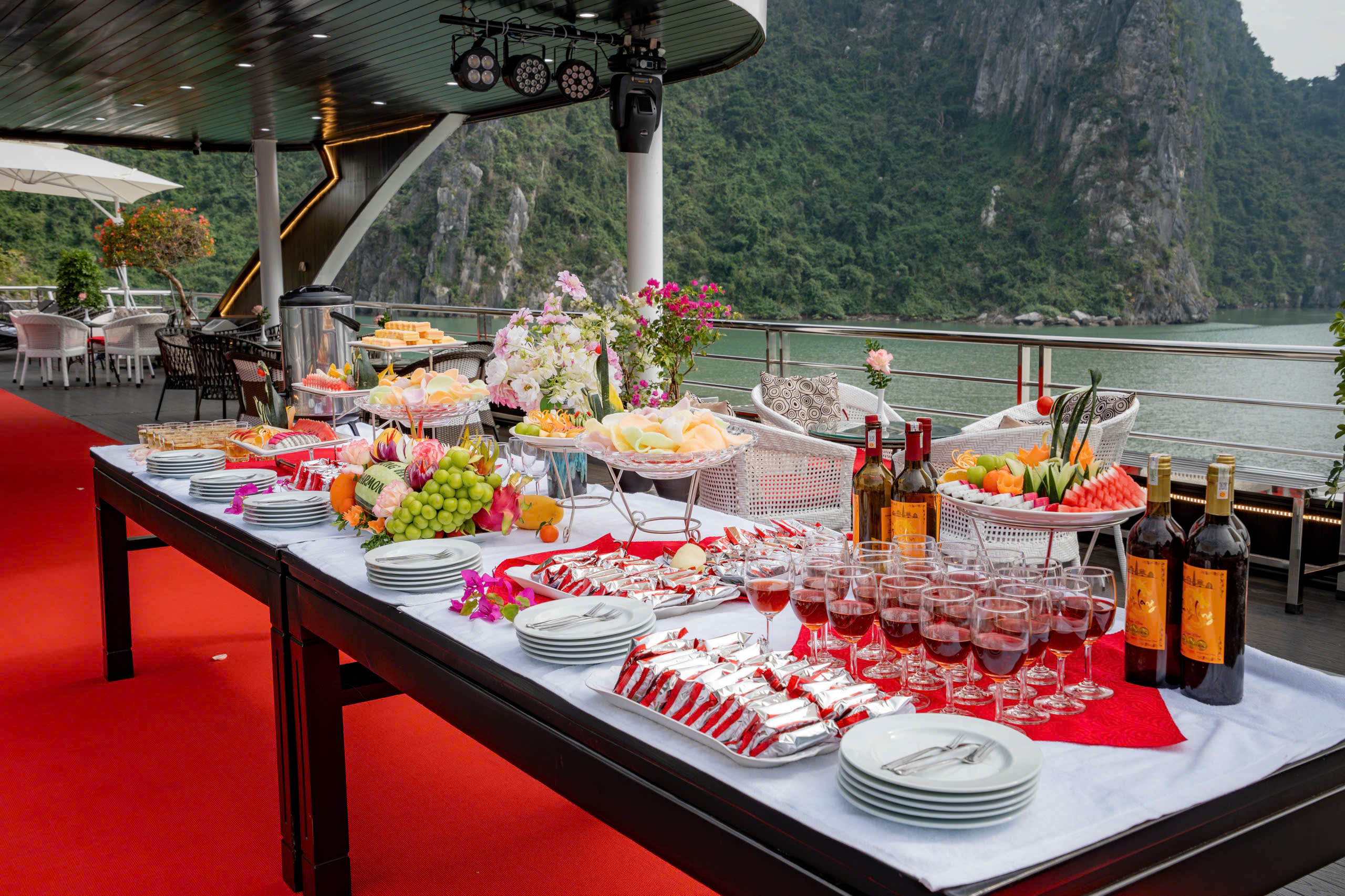 12:30: Thưởng thức bữa trưa cao cấp trên du thuyền, vừa dùng bữa vừa ngắm nhìn hàng ngàn đảo đá kỳ vĩ trên vịnh.